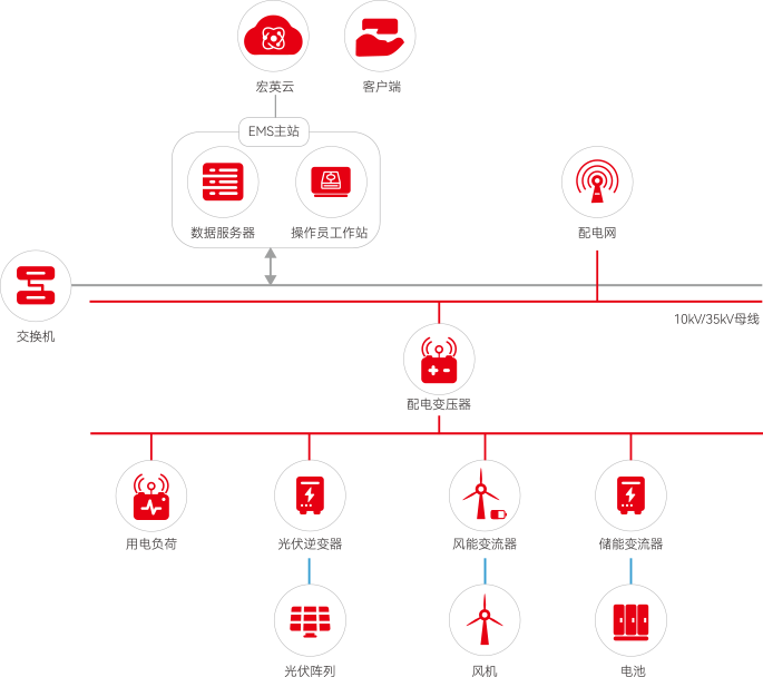 huatihui风光储一体化解决方案是融合物联网技术,将风能、太阳能、储能以及EMS能源管理系统结合起来,实现风、光、储多能互补协同运行,能源精准调配减少弃风弃光,提高能源综合效率,同时通过调峰、调频和调相等功能,有效抑制电网波动,提升电网稳定性、可靠性。